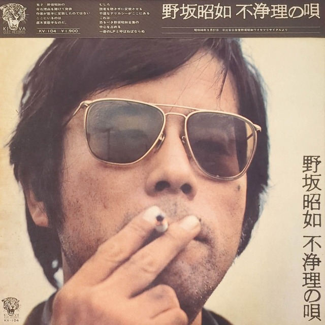 B面に軽微なヤケあり、ところどころザザッとしたノイズが乗る箇所有ります。 ジャケットは概ね良好。 オビ・インサート共に有り。 昭和48年に日比谷公会堂で行われた「野坂昭如ワイセツリサイタル」を収録したライブ盤。 美輪明宏がゲスト参加。 名曲「マリリン・モンロー・ノーリターン」収録。 Label / No.:ELEC RECORDS / KV-104 Country:Japan Year:1973 Format:LP Disc Condition:B- Jacket Condition:B ++++++++++++++++++++++ Disc Condition A:新品 A-:新品同様 B:一般的な中古 B-:少し傷みや軽微なノイズ有り、リスニングにはほぼ影響無し C:傷み有り、ノイズが乗ったり場合によっては音飛びなどもあり D:ジャンク品 Jacket Condition A:新品 A-:新品同様 B:一般的な中古 B-:少し傷み有り、軽度のシミや破れなど C:傷み有り、大きめの破れやシミなど D:ジャンク品